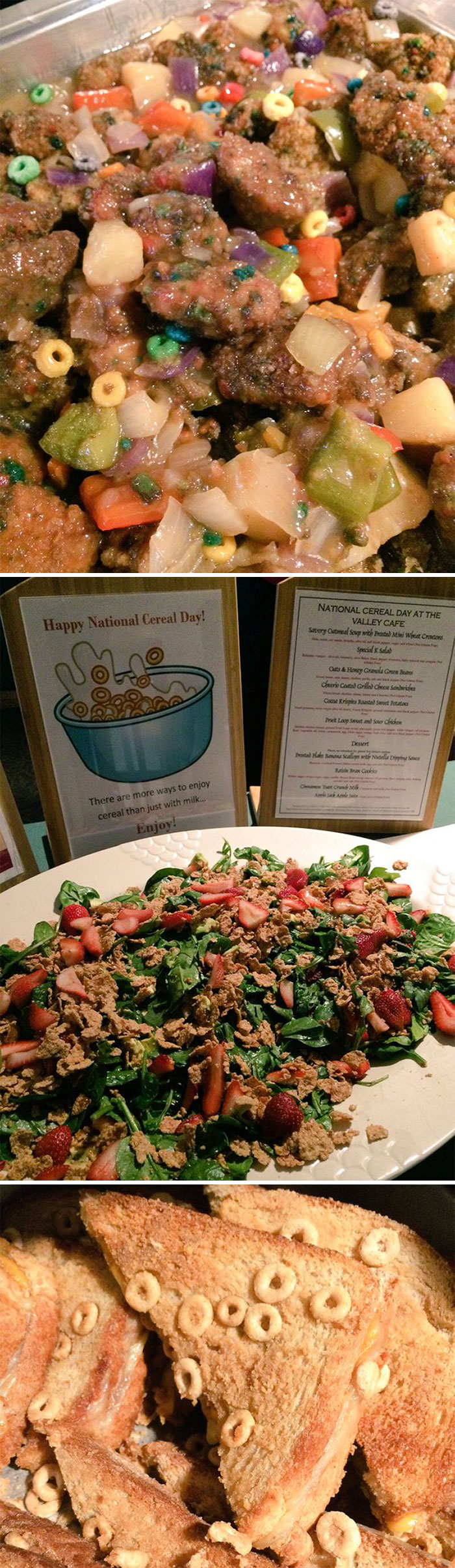 Cereal Day? It sounds like they made up a holiday as an excuse to put cereal in their food.