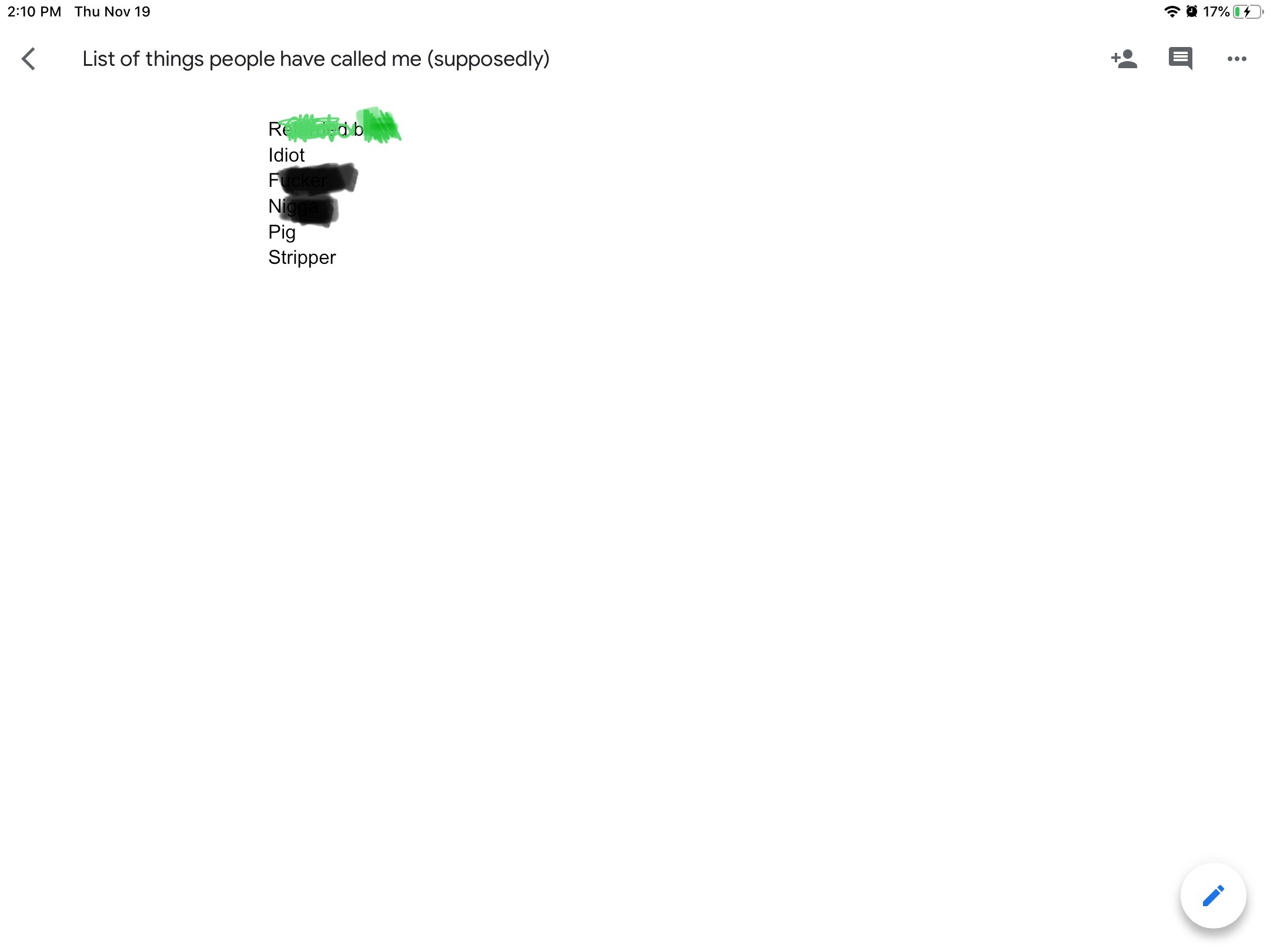I’ve started a document of things people have called me so far