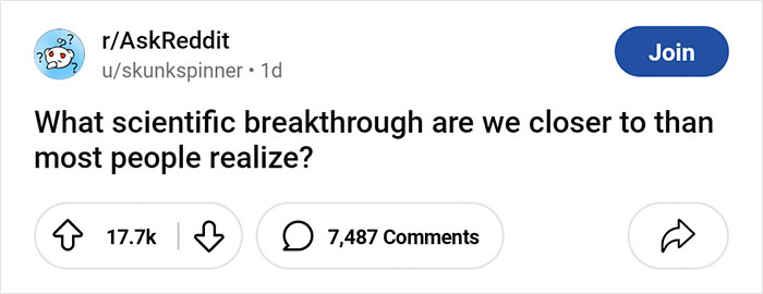 Perhaps inspired by how fast science is moving, one person decided to enquire about other discoveries that humanity might be able to celebrate soon. “What scientific breakthrough are we closer to than most people realize?” they asked. So, if you’re in need of some positivity in your life and want to see what the human mind is capable of, check out what these people shared below!