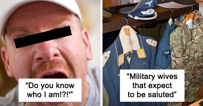 Military wives that expect to be saluted or have the same treatment as their husbands. Or brag about their rank.