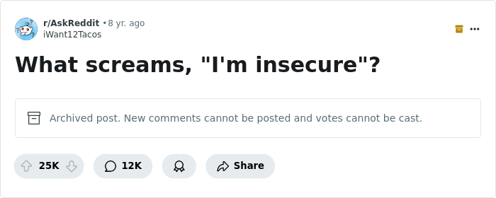 There really are all kinds of people out there. Some are bubbly and fun, while others... well, they can’t stop name-dropping, oversharing, or turning every chat into a bragging session. Sound familiar? People online are sharing the small (and sometimes cringe) behaviors that scream “insecure” and honestly, a few of them are uncomfortably relatable. From constant humblebrags to hijacking conversations just to feel noticed, these little moments might make you wince or laugh. Keep scrolling to see what others had to say—and maybe spot a habit or two to rethink.
