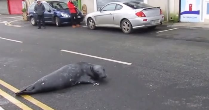 Sammy the seal has found a better way to get fish than hunting them himself. Recently caught on tape, he’s seen crawling out of a harbor and crossing a two-lane street aiming for the Lighthouse Seafood Restaurant in Wicklow, Ireland. The smarty pants does it every day!