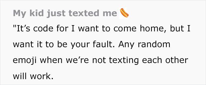 But as one story on the ‘Made Me Smile’ subreddit proves, a simple emoji can suffice. Two days ago, Redditor Limitless_yt89 shared a screenshot where a mom reveals a secret code for “I want to come home, but I want it to be your fault.” Whenever she receives a random emoji from her teen son, a siren immediately goes off in her head, letting her know the little one is in trouble.