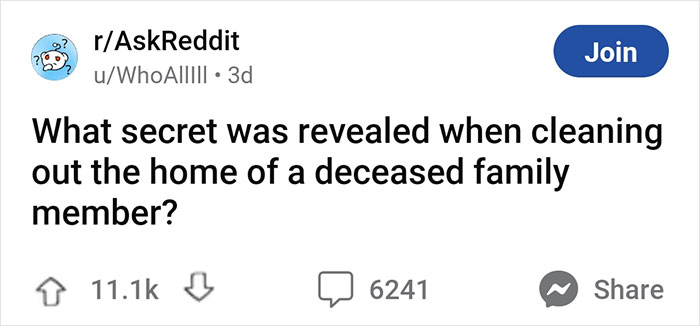 Members of the ‘Ask Reddit’ community recently discussed such information after u/WhoAllIll asked them what secrets were revealed when cleaning out the home of a deceased family member. Netizens shared stories covering all sorts of scenarios, ranging from bizarre to hilarious and even shocking. Scroll down to find them on the list below and see for yourself why some people kept their lips sealed until the end of their days.