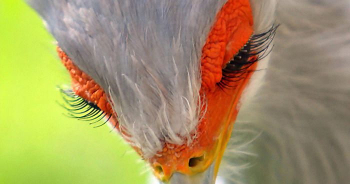 The secretary (Sagittarius Serpentarius) is a large African bird related to hawks and eagles. It got this name because of its quill-like crests on the back of its head that resemble 18th-century clerks with pens tucked into their wigs. This predatory bird has another distinctive feature. Eyelashes. Long, prominent eyelashes that makeup models would kill for.