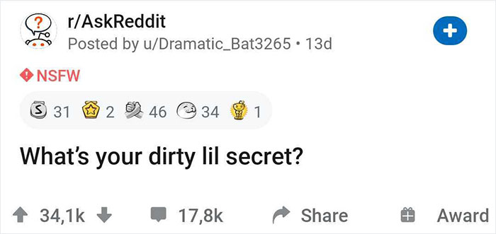 So in an attempt to make everyone's life a little easier, Reddit user Dramatic_Bat3265 submitted a question to the platform, asking: "What's your dirty lil secret?" Immediately, people rushed to confess, and as of this publication, there are over 17,000 comments under the post, with sins ranging from small and funny to big and concerning. Here are some of them.