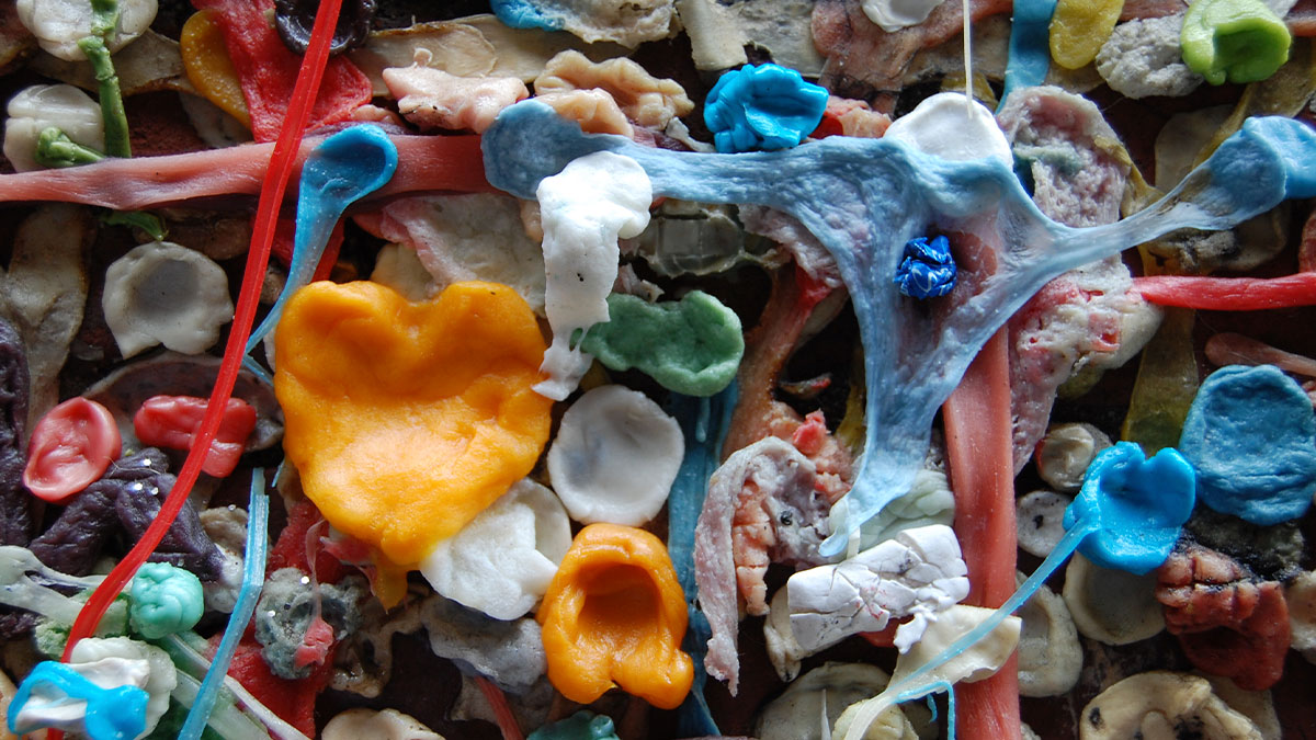 Work at an Art Gallery. One Summer they had an out door installation called "Gumhead". It was a large bust of the artist that exhibit belonged too. People were of course, encouraged to stick their used gum to it and by the end of the exhibit, it was absolutely covered in chewed, rained on, heated up & had birds [droppings] on it. One night I'm sitting in the security room when i noticed a guy pacing around the bust. I zoomed in on him to find that he was picking the gum off the bust & shoveling it into his mouth.... I'll never forget that one.