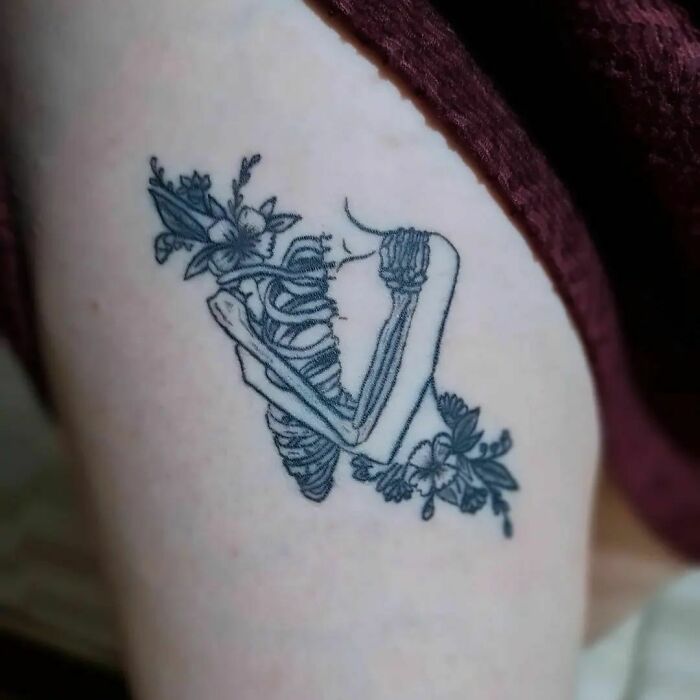 Conceptual Tattoo of Skeleton and Flowers