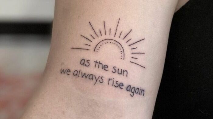“As The Sun, We Always Rise Again” Lettering Tattoo