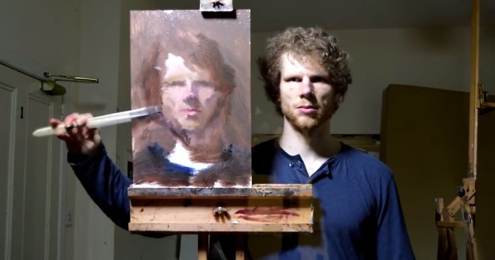 Self-portraits have been around since the earliest times, but it wasn’t until the mid-15th century that artists started frequently depicting themselves as the main subject or as other important characters in their work. The reasons are simpler than you think – cheaper mirrors and the emergence of the panel painting. Ewan McClure, a professional artist living in Edinburgh, Scotland, tried the mirror technique as well, and the result was wonderful. Ewan put his camera behind a two-way mirror and recorded a timelapse of the whole process which he summed up in a really modest sentence: “Around 3 hours of trial-and-error for a loose but recognizable result.”