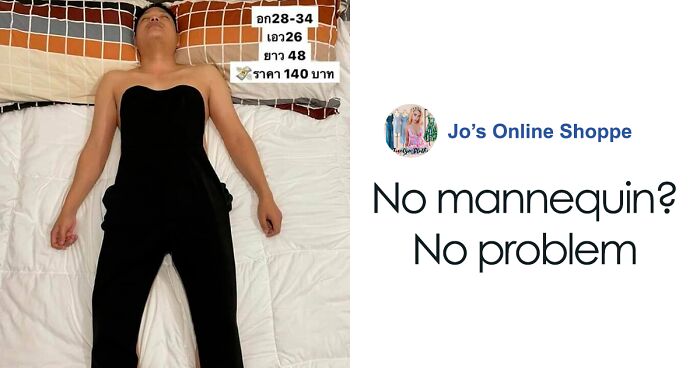 Jocelyn May Jazareno Caday, the owner of Jo’s Online Shoppe, found her husband sleeping in a “handy” position, so she decided to use him as a clothing model, showcasing her new items. She “made” him wear pants, dresses, skirts, and flowery tops, and took pictures throughout the entire process, which went viral immediately after Jocelyn uploaded them to her shop’s Facebook page.