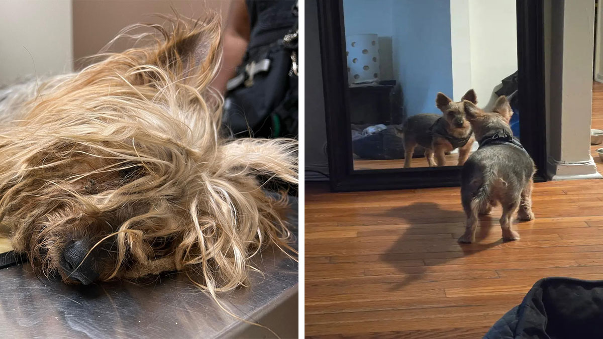 Meet Mickey, a tiny Yorkshire terrier from Brooklyn whose life had shrunk down to a daily routine of scavenging for food, weighed down by a coat that had grown into heavy mats and even crept over his eyes. A neighbor watched him shuffle around outdoors for months, horrified as he dodged traffic and seemed to disappear into his own fur.