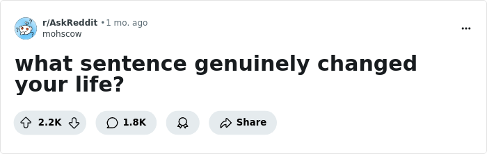A sentence, for example. A string of words you hear somewhere might, let's say, alter your brain chemistry, make you put things in perspective, and change up your life. Today we have a full list of sentences that did exactly that for someone. So, let's jump in, shall we?