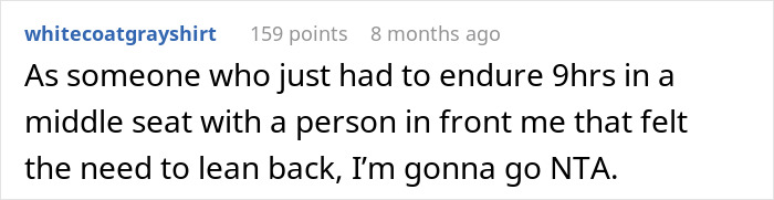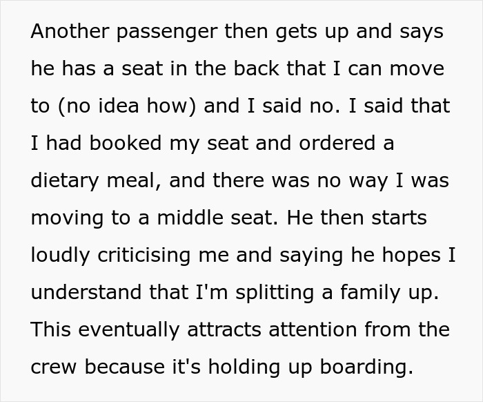 According to the Redditor, the fact that she had pre-booked a seat and ordered a specific meal to that seat for health reasons was irrelevant. People shouldn’t treat each other like this. “He was very rude when I confronted him on this, as I don’t think he expected to be called out on his behavior.”