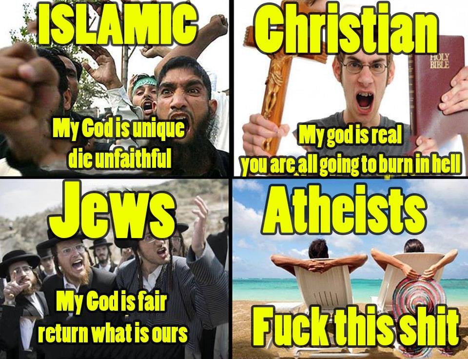 I’m gonna pîss in some of my fellow atheists’ cornflakes: we have exactly the same capacity to be stupid, selfish, callous or idol-worshipping as religious people do, and I’ll take a humble religious person over the worst-behaved atheists any day.