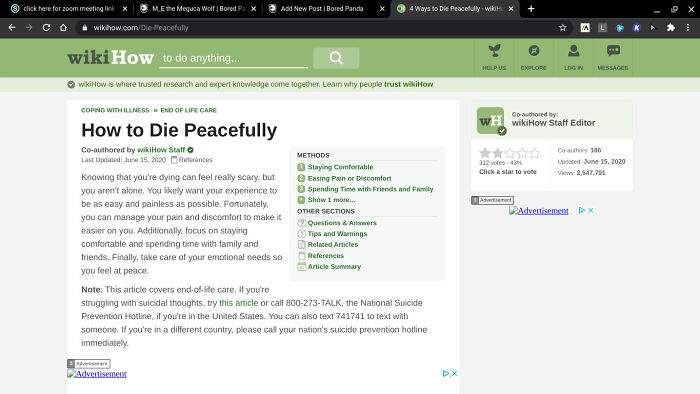 WikiHow. The most cursed site on earth. If you are scrolling there, and find any weird articles, screenshot them or take a picture, and post them here!