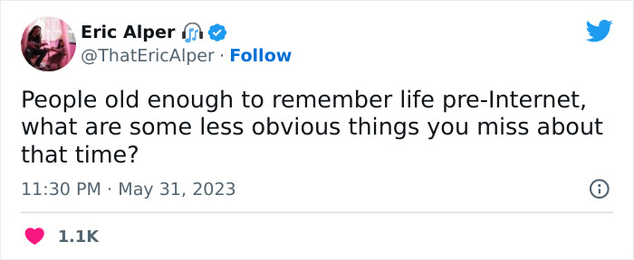 If you’re in the mood for nostalgia, we’ve got the perfect list for you, pandas. Eric Alper recently asked fellow Twitter users to share the little things they miss about their pre-internet lives, so sit back, relax and get ready to reminisce on the good old days!