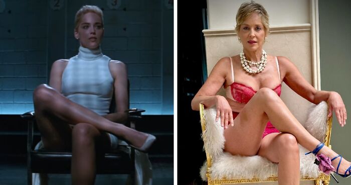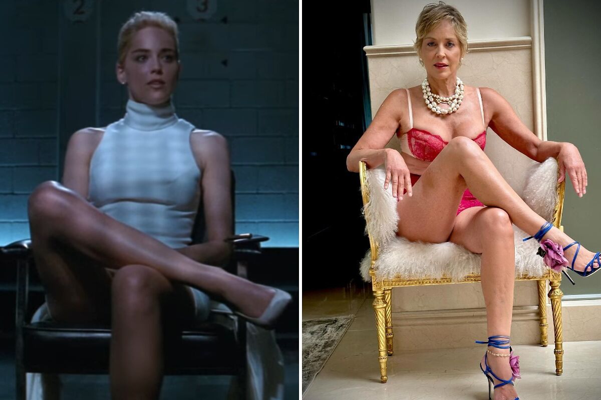 - Sharon Stone, at 66, recreated her iconic "Basic Instinct" pose on Instagram in vibrant red lingerie.