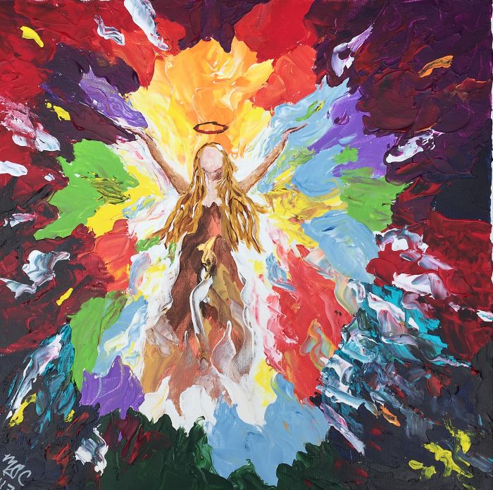 This work symbolizes my struggle to move forward after leaving an abusive and cult-like marriage (and community) with my four beautiful children in 2011. I refused to allow my light to be smothered and I have worked hard, over the past 6 years, to regain my sense of self, understand my beauty and over-come PTSD and anxiety from the abuse. I will never let the darkness overcome me.