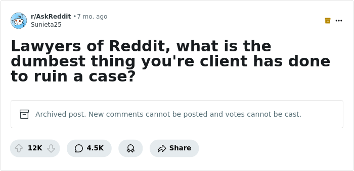 “Added 9 Years To A Short Sentence”: 50 Lawyers Recall The Stupidest Things Clients Have Done