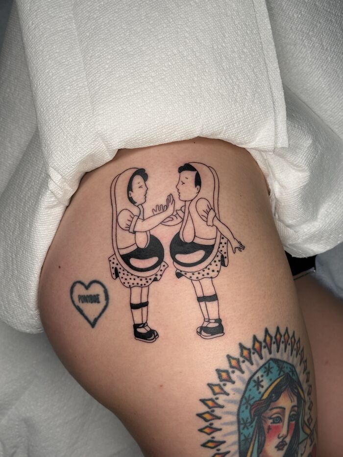 I started when I was 17. I learnt by watching YouTube videos and practised on pig skin. I had a lot of friends who were excited to get tattooed, and I was just as excited to become a tattoo artist. At the time, continuing formal education wasn't an option, so tattooing became both my artistic outlet and my livelihood. Since then, I've tattooed in 14 different U.S. states—and I'm now based in Chicago, where we're planning to open our first studio!