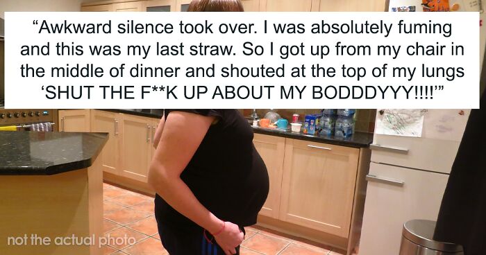 There was absolute silence. Relatives were completely discouraged by hearing such words from the OP’s spouse. As the woman herself admits, this was the last straw for her, and she, jumping up from her chair right in the midst of the festive dinner, yelled at her husband right in the face with anger: “SHUT THE F**K UP ABOUT MY BODY!”