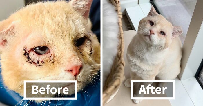 InterviewAn adorable and gentle cat named Shrek was found in a feral cat colony, but he didn’t really belong there, since he was bullied by other cats. Because of that, Shrek was malnourished and was covered in scars from catfights. But besides that, the poor guy was partially blind, with goopy, bagged eyes that resulted from a condition called entropion.