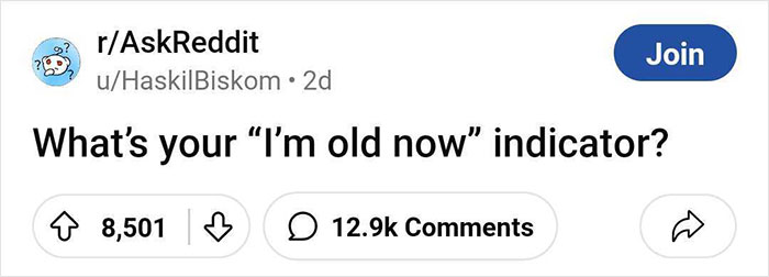 Someone asked netizens “What’s your “I’m old now” indicator?” and people shared the moments they knew that youth was over. So get comfortable as you scroll through, prepare to date yourself, upvote your favorites and be sure to share your thoughts and experiences in the comments section below.