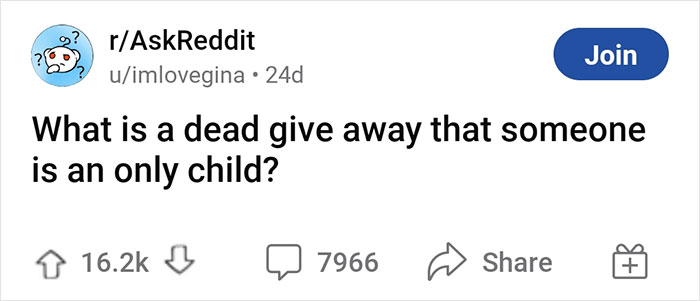 Ah, the elusive life of an only child. Of course, 20% of people in the world know exactly what it’s like to grow up without siblings. But for those of us who grew up wearing hand-me-downs and squeezing into the dreaded middle car seat, there are some dead giveaways that someone else was an only child. Reddit users have recently been discussing these traits, so you’ll find some of their most spot on responses below, as well as some thoughts from only children on what makes them unique!