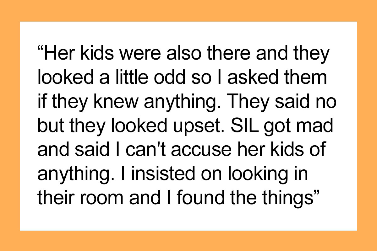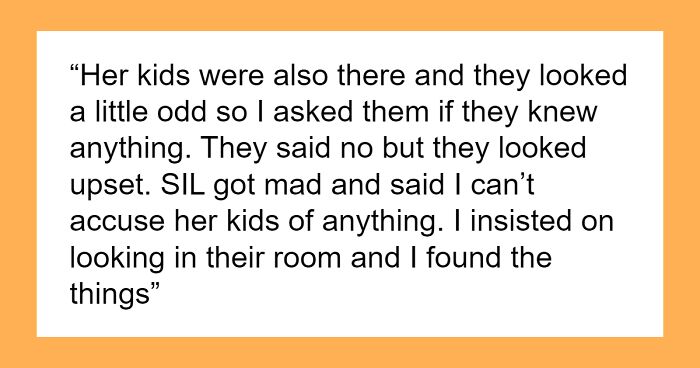 Load More Replies...That's what I'm thinking! OP needs to go through her valuables and make sure nothing else is missing. And the fact that SIL went straight to "You can't accuse my kids!" makes me think she knew about this.