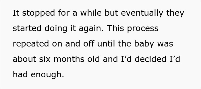 SIL broke their agreement on and off for four months, which the author tolerated. This could be a reason why her in-laws saw nothing wrong with what they were doing and even tried to silently gaslight her.