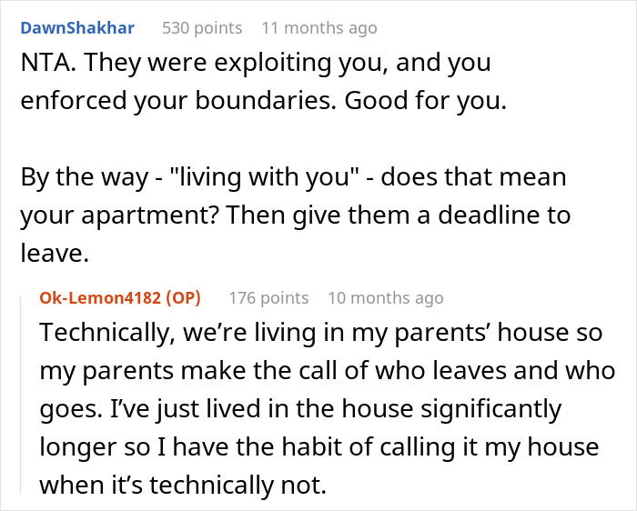 Most readers sided with her, with some sharing their suggestions
