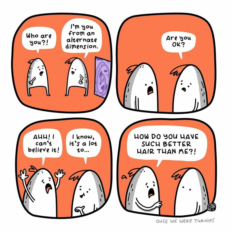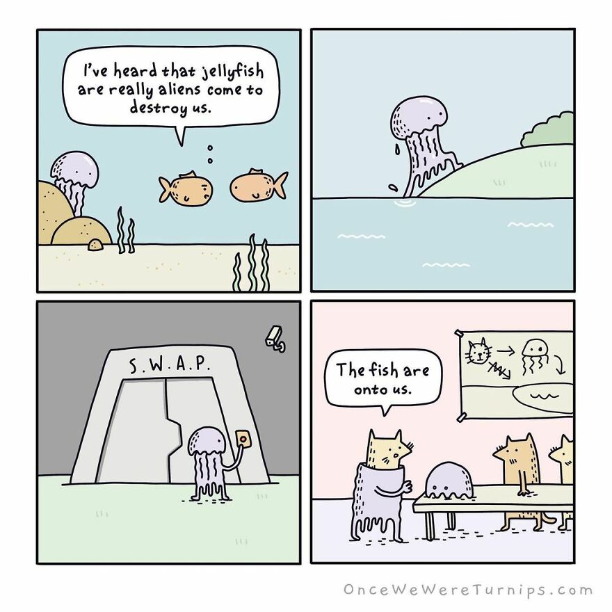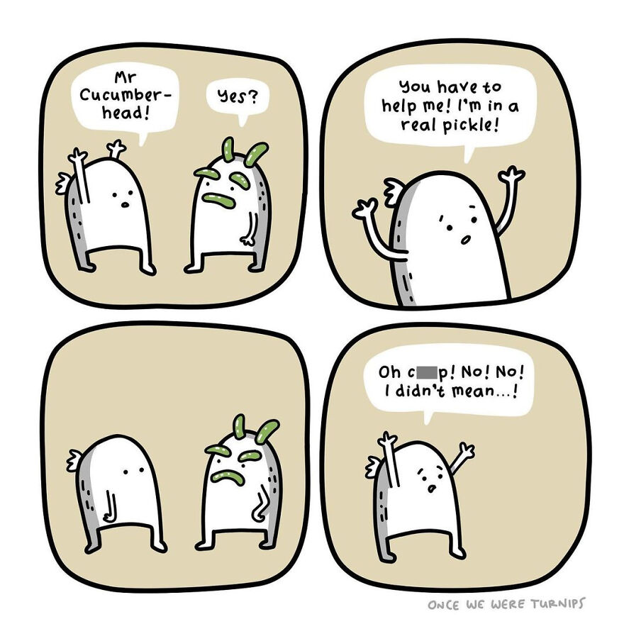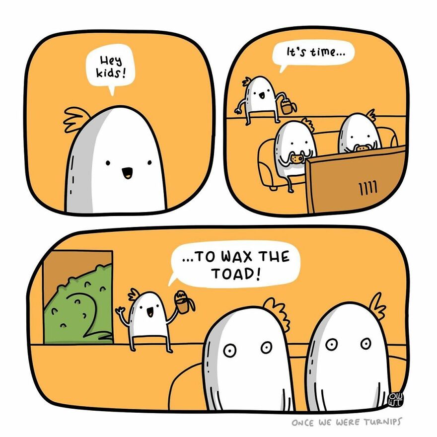 We managed to get an interview from Pete and he told us how he got started creating these comics: "Like many, if not most, comic artists I was always drawing silly little pictures of people, animals, and things. Luckily I had great friends and family who looked at my terrible scratchings and told me they were good, so I never stopped. Always encourage the little artist wannabes in your life. I’ve been drawing coming ideas for years, but I began Once We Were Turnips in February 2020, and I will continue as long as people keep making gross snorting sounds from their mouthparts when they read my comics."