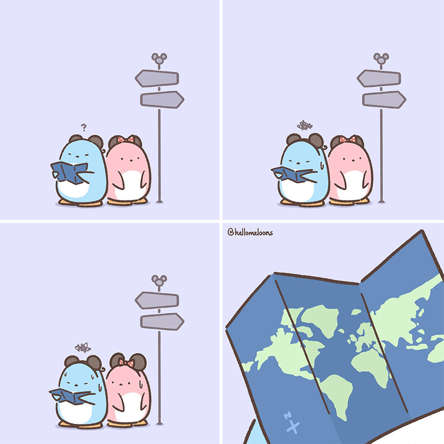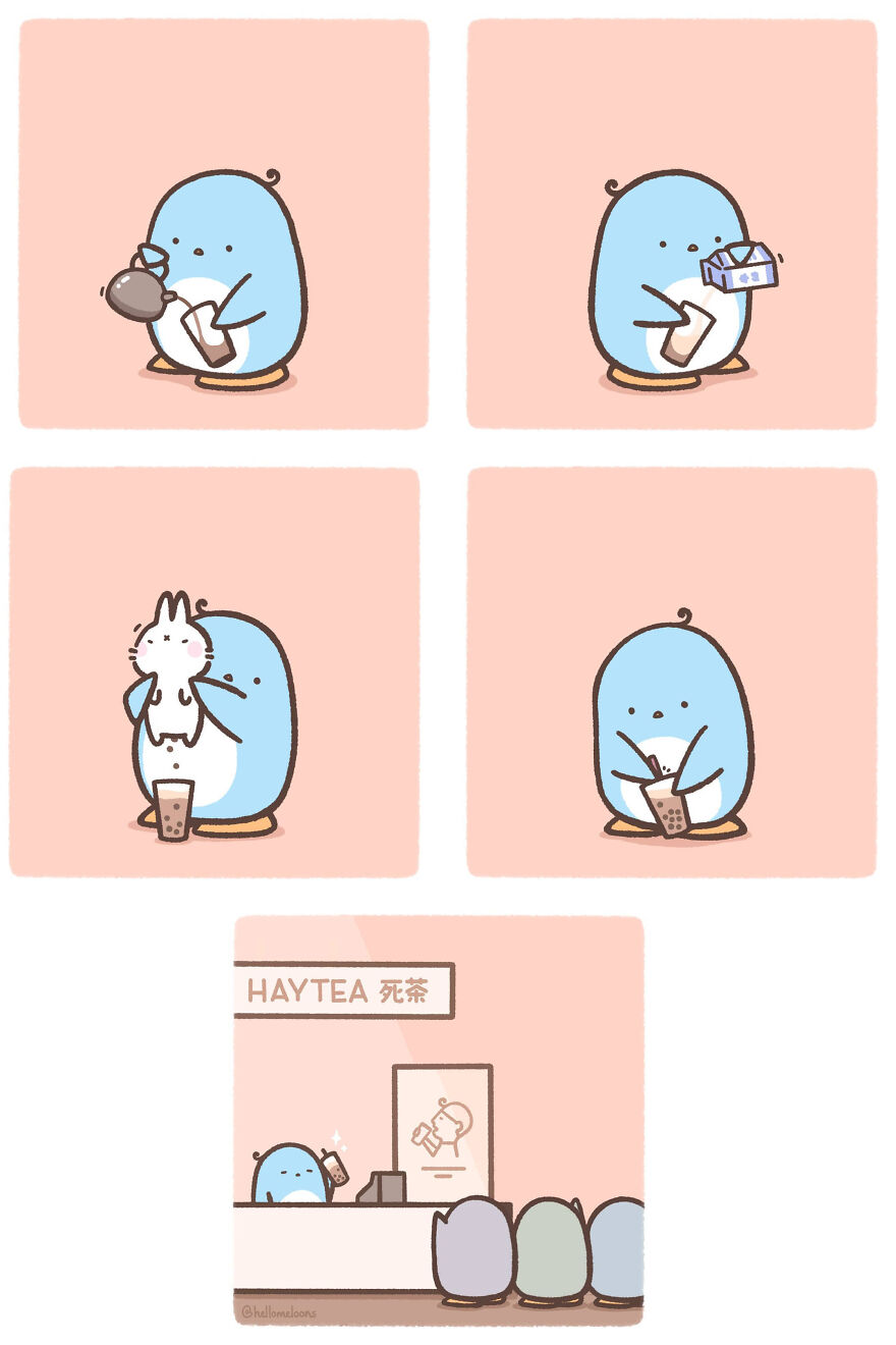 An Instagram account called "Meloons" with almost 15,000 followers portrays the everyday life of a human in the shape of a cute blue penguin! The comics are not only cute and fun to look at, given the colors, but also have some unexpected twists given how innocent they look.