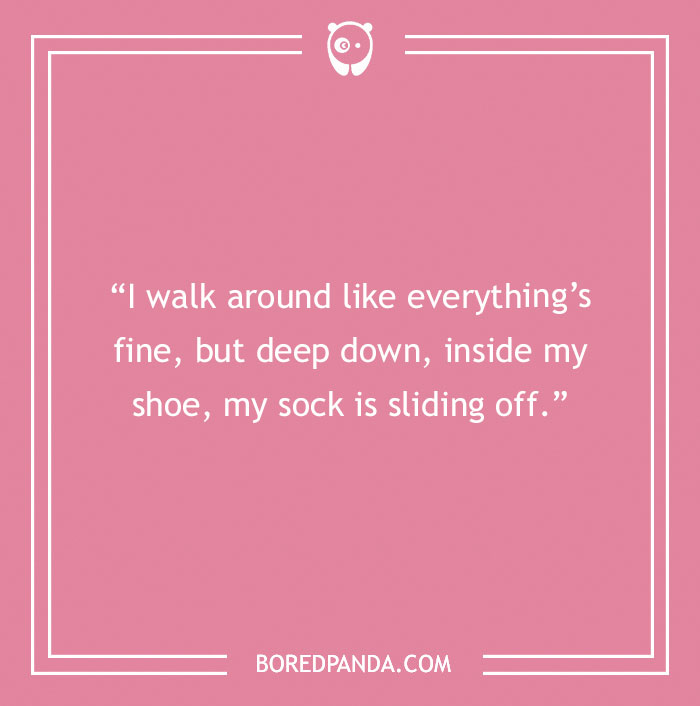 “I walk around like everything’s fine, but deep down, inside my shoe, my sock is sliding off.”