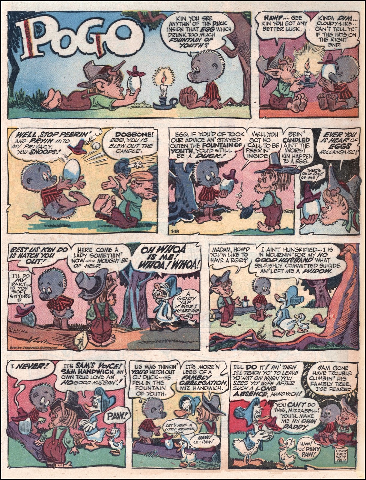 In Walt Kelly's "Pogo" cartoons he had a character named Sam Handwich. He was a duck that fell into the Fountain of Youth and became an egg. Copy of one of the cartoons attached (and hidden) below.
