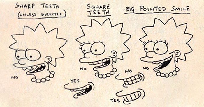 In the second guide shared by the former showrunner, you can see the rules laid out for how Lisa’s hair should look. Apparently, it always has to have eight points of hair clustered in groups of either two or three. Also, the line for her neck and body should be the same.