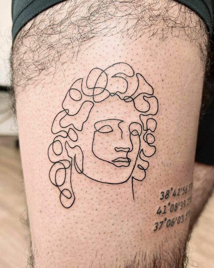 Line art tattoos are designs made with a single line in one ink color. This body art is precise and takes a lot of skill. It is also called fine-line tattoo, minimalist tattoo art, single-line tattoo, or line design. Thanks to the minimalist line style, the design is simple and subtle. If you are looking for a beautiful tattoo idea with perfect execution, you should opt for a unique tattoo like this.
