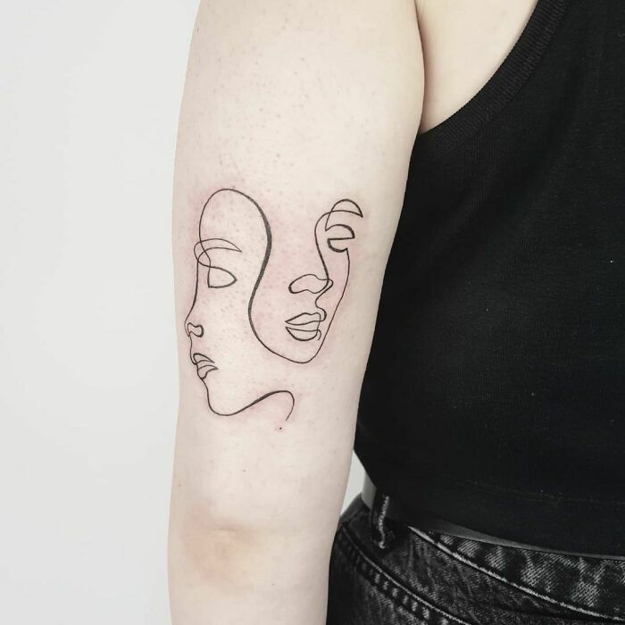 Single Line Faces Tattoo