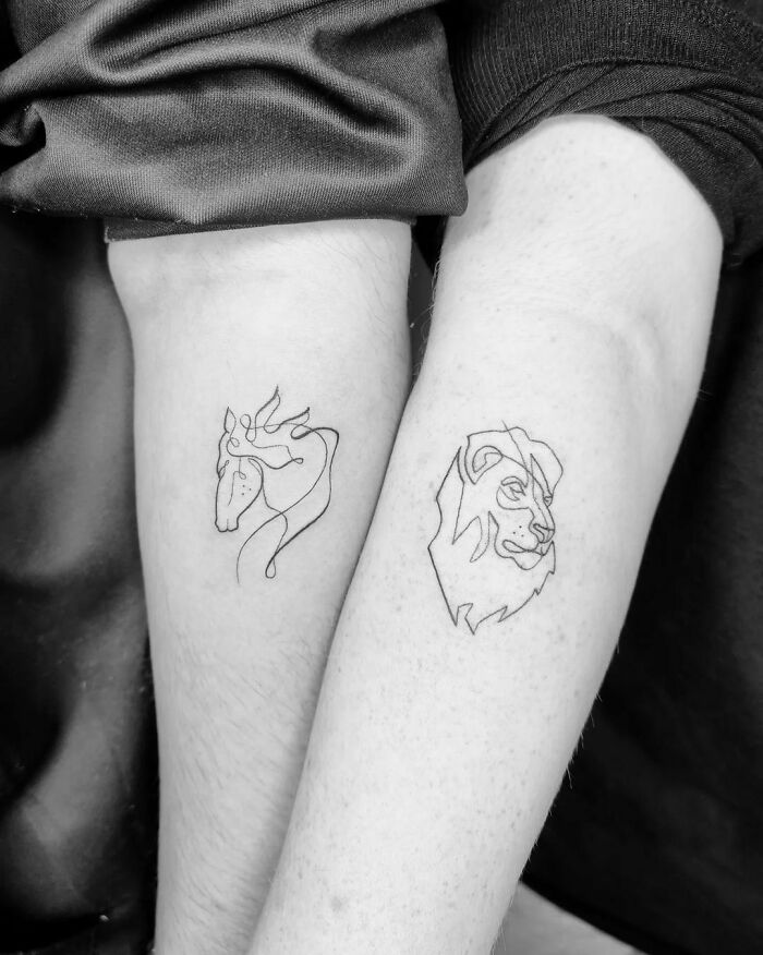 Matching Single Line Tattoos
