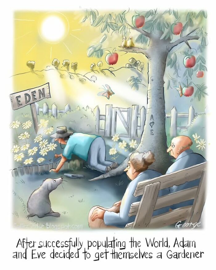 We spoke to the cartoonist and asked him a few questions about his series. We were curious to know how George first got inspired to start creating comics and to learn more about his creative process. The artist shared that it all began with “reading Mad, Cracked, and Crazy magazines back in the ’80s,” which sparked his interest in the genre and motivated him to start making his own creations.