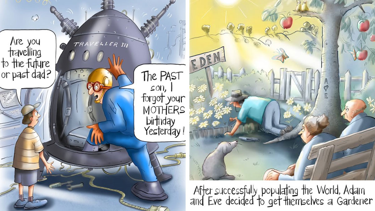 Following that, the cartoonist opened up about the artists who have had a significant impact on his style and creative approach, sharing which peers and inspirations he holds in high regard: “Farside in my early years. Nowadays, I get inspiration from building on my previous work.”