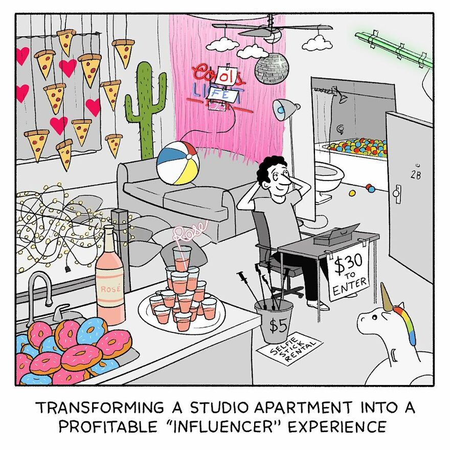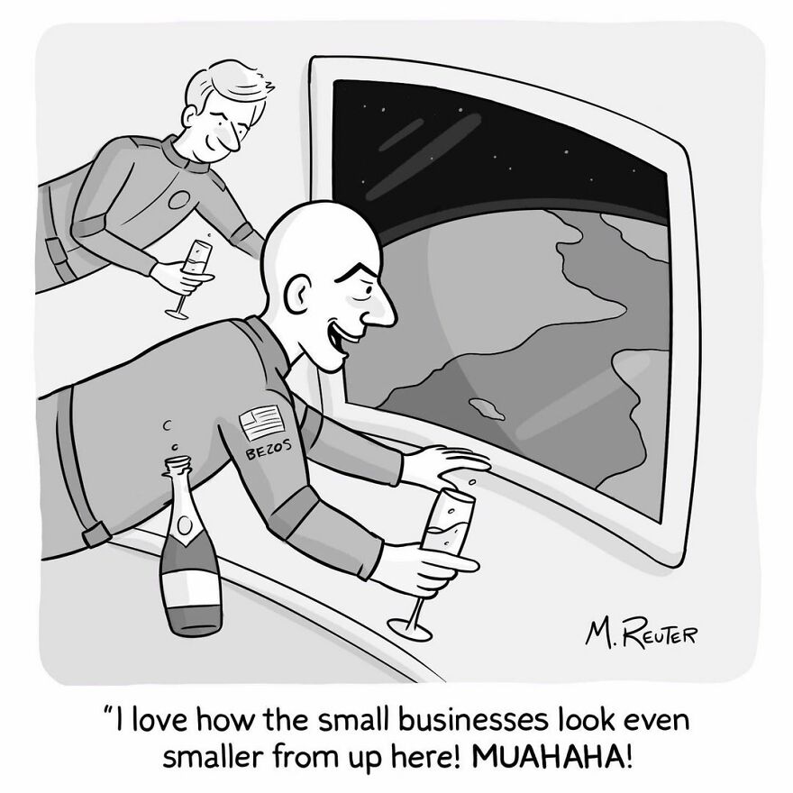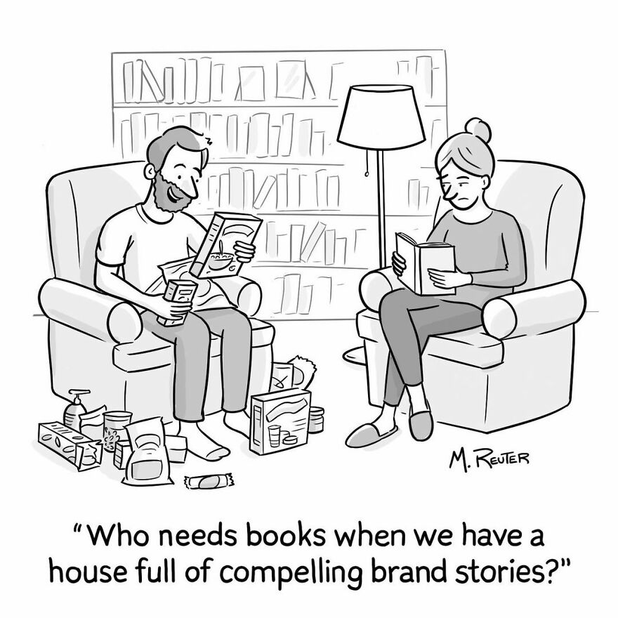 But let's not get ahead of ourselves. Today's comics are by Matt Reuter, and as the previous paragraph might suggest, they mostly stem from insights about regular day-to-day life. The cartoonist, designer and illustrator from Brooklyn, NY might be considered a classical comic artist, a cartoonist, and his style supports this: a single image that acts as a setup, and a description that acts as a punchline. They look as if they came out straight out of a newspaper!