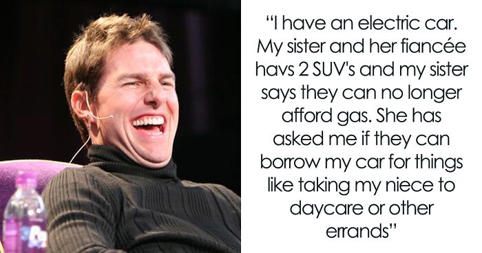 And then, one fine day, the sister turned to him with an unexpected request. According to the woman, she and her husband can no longer afford gas for their two SUVs, so she would appreciate it if he would let them use his electric car from time to time. Of course, the spouses would be obliged to take care of the vehicle and charge it at their own expense… but the OP answered negatively. And here’s why.