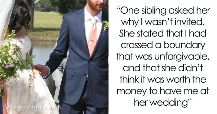 Moreover, when the upcoming wedding of the Original Poster’s sister with the same fiance was recently announced, they were the only one of the relatives who did not receive an invitation. Even the bride’s parents, with whom she had almost cut all ties for a long time, were invited. Everyone except the OP. And when one of the relatives asked why the author fell out of favor with the bride-to-be, they received the answer that ‘they crossed a boundary’. Just like this – and nothing more. It’s only natural that the original poster felt devastated over all this.