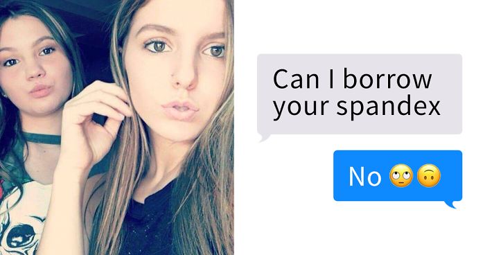 We love our sisters dearly. We really do. But that doesn’t stop us from having explosive, petty fights with them all the time. That’s why we need stories like this one about 16-year-old Trinity Hartman and her 12-year-old sister Jordan Jordan Torstenson, a pair of ‘frenemies’ from Arizona who recently shared a text argument they had online. What started as a simple request to borrow spandex quickly erupted into a full-blown war of words over entered rooms and misplaced makeup, but the way it ended is what made the screenshot go viral on Twitter. People found it just a little too relatable for comfort, and started sharing their own sibling spats in response.