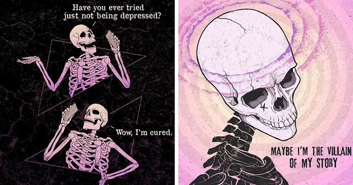 Here Are 65 Of My Relatable Artworks Of Skeletons With Dark Inspirational Messages