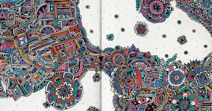 “Organized chaos” is how Austin, Texas, based artist Sophie Roach describes her style. She started to sketch because of the “stress and boredom of college,” but it was only in 2012, two years after she began that, Roach’s art began to take off.