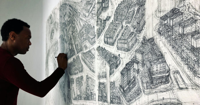 Carl aka ‘Sketch’, is a self-taught artist based in London. He has been sketching since the age of 5, when he first became interested in the aesthetics of architecture, maps, and cityscapes. Whilst in his early work he created fictional cities, Carl’s current practice focuses on depicting visited cities from an aerial viewpoint, emphasizing the abstraction of pattern and intensifying the detail and abundance of information. Predominantly working with ink on archival paper, Carl distinguishes between drawing and his approach – sketching – which allows for a more immediate and impressionistic response.