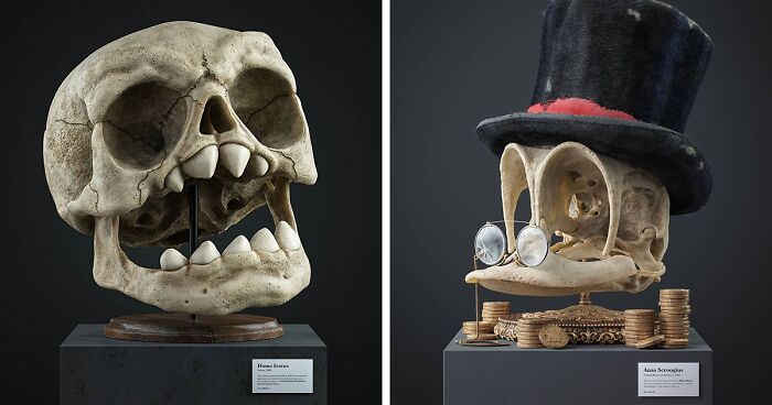 Artist Filip Hodas has taken this idea into consideration and made some realistic illustrations showing what anatomically correct skulls of popular characters would look like. Keeping the iconic attributes like hats or glasses and adding “scientific names” of the characters, Filip welcomes us to a virtual museum.